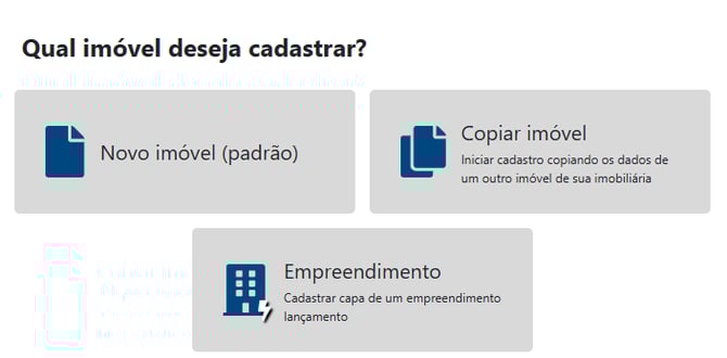 Novo imóvel (padrão): Para iniciar um cadastro do zero.
