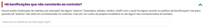 📌 Importante: Essa informação não aparecerá no contrato de compra e venda. Ela é de uso interno da imobiliária e serve apenas para registro e controle de bonificações que serão tratadas à parte do fluxo contratual.