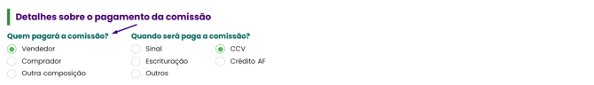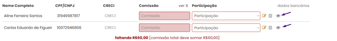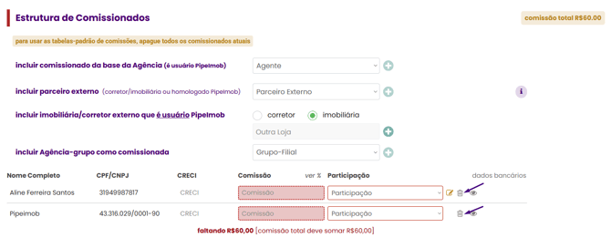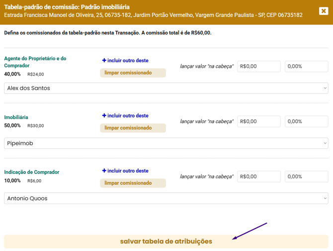 🔔 Lembre-se: A soma das comissões deve bater com o valor total de comissão informado no preenchimento de Imóveis & Valores.