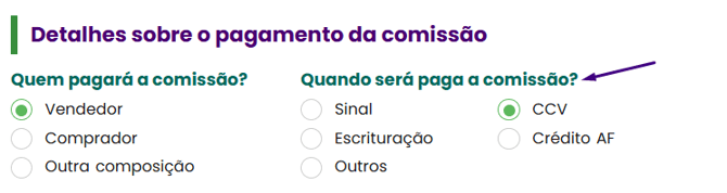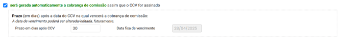 - Você pode optar por habilitar a geração automática da cobrança de comissão assim que o CCV for assinado.