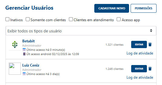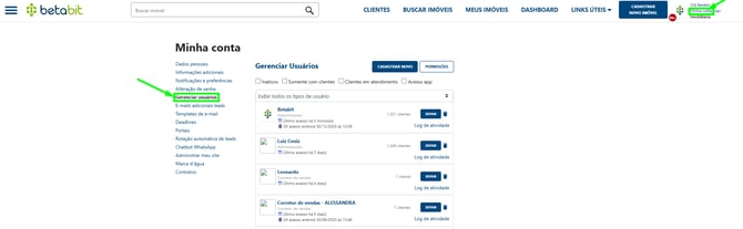 Manter a lista de usuários atualizada é fundamental para a organização da sua imobiliária. No Betabit, você centraliza esse controle em uma área específica de configurações.