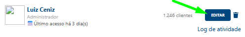 Edição de perfil: Caso precise alterar o nível de acesso, e-mail ou dados de um colaborador, basta clicar no botão EDITAR ao lado do nome dele.