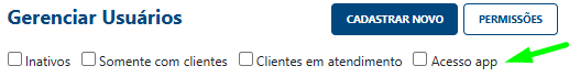 Filtros de busca: * Você pode marcar a caixa Exibir inativos para localizar usuários que foram desativados anteriormente.