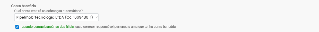 Se sua imobiliária utiliza contas bancárias das filiais, o sistema também permite usar automaticamente a conta vinculada ao corretor responsável.
