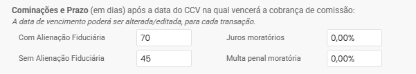 Esses prazos serão aplicados como padrão em todas as transações, mas você poderá editá-los individualmente, caso necessário.