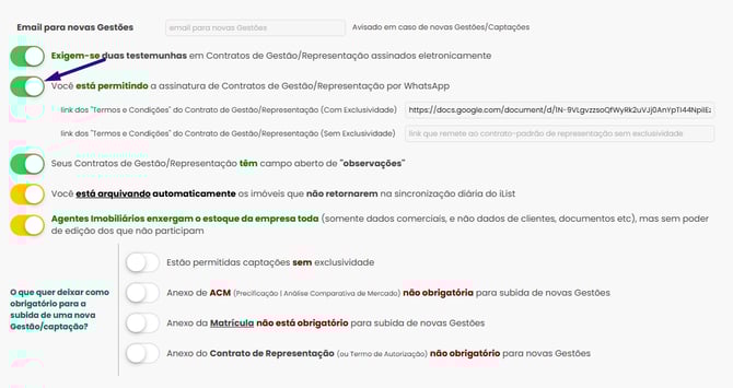 Como ativar a opção de contrato de captação ou representação por WhatsApp