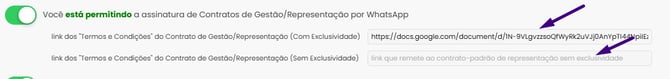 Ative a chave Contrato de Gestão e Representação por WhatsApp.