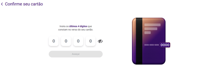 Nesta etapa, o sistema precisa validar que você já está com o cartão em mãos.