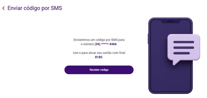 Você receberá um SMS com a mensagem: "Pipeimob: Seu código de ativação do cartão é [codigo]".