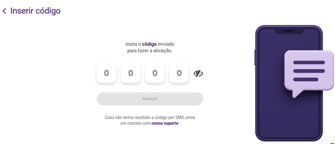 Digite esse código de 4 dígitos na plataforma e clique em Avançar para concluir a ativação.