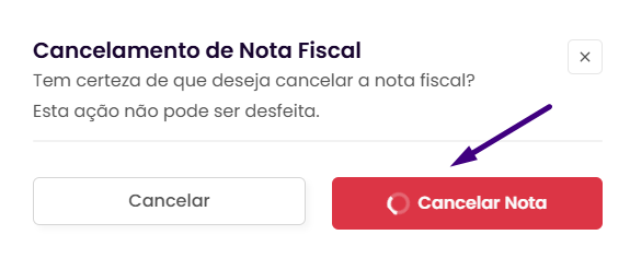 - Confirme na janela de Cancelamento de Nota Fiscal.