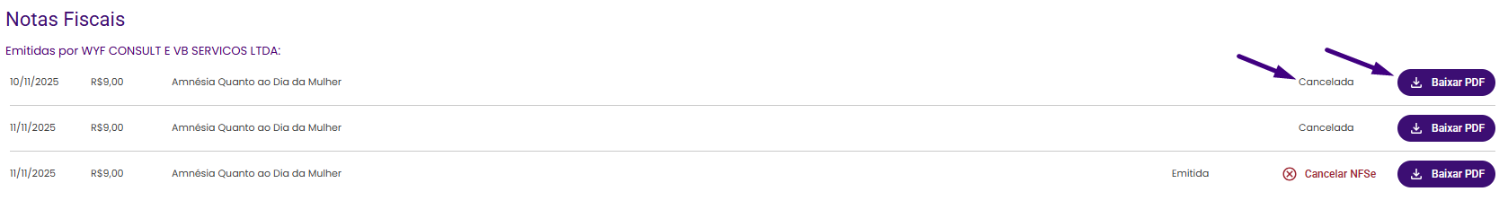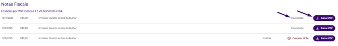 Após o cancelamento, você pode baixar o PDF da nota com a indicação de que foi cancelada.