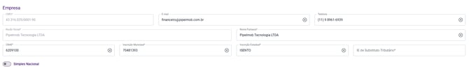 💡 Dica: se tiver dúvida sobre algum campo, peça apoio à sua contabilidade todos esses dados fazem parte do cadastro fiscal da empresa.