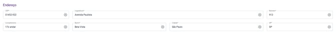 Os dados de endereço normalmente já vêm preenchidos com base nas informações da conta, mas é importante conferi-los: