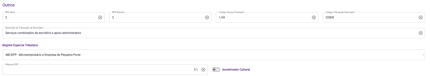 Esses dados definem como a nota será gerada junto à prefeitura: