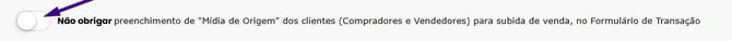 Ativar ou desativar a obrigatoriedade do preenchimento da mídia de origem nos formulários de transação.