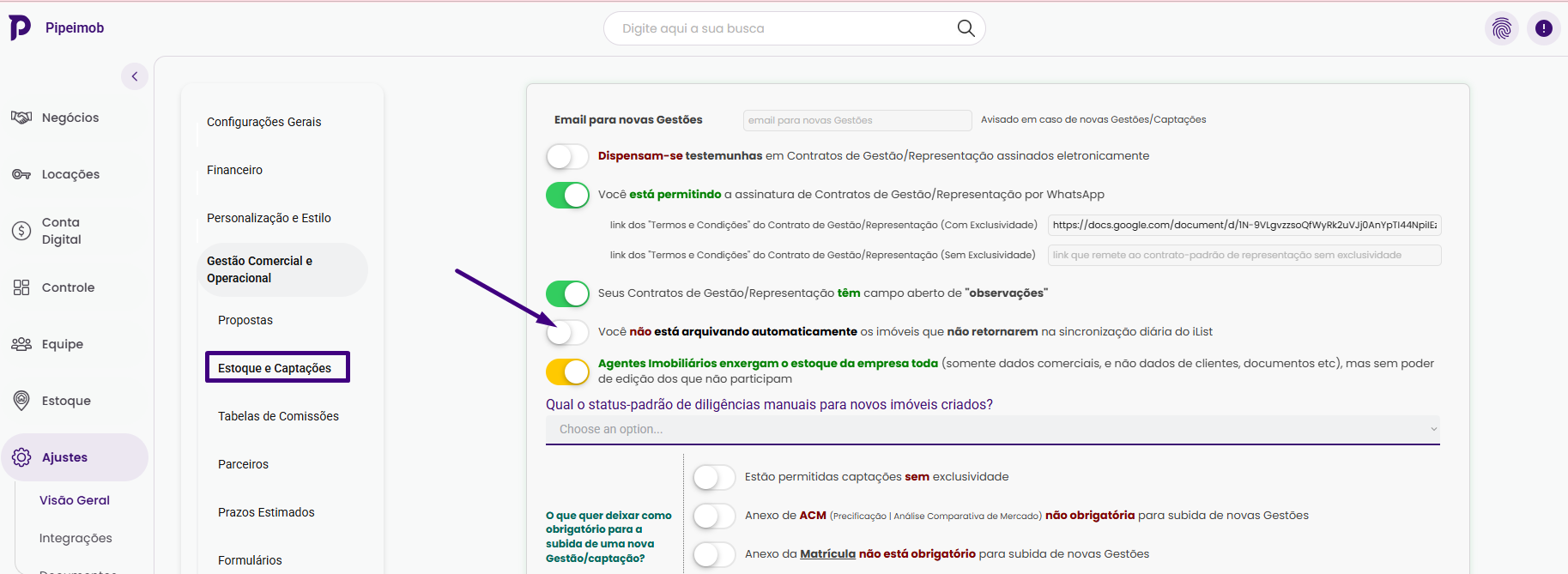 Basta ativar o botão para que o PipeImob comece a fazer a gestão automática do estoque.
