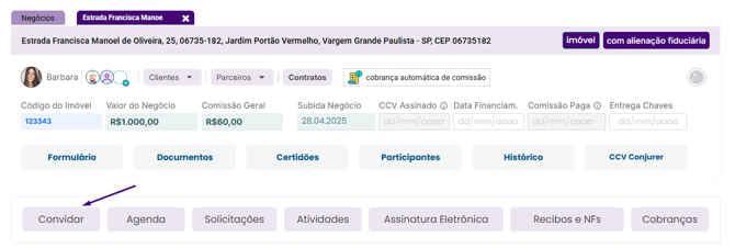 O convite pode ser feito diretamente na tela do negócio. Veja como: