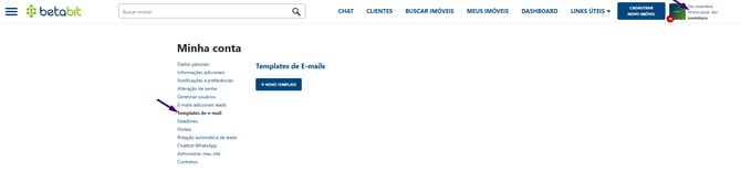 2. Na coluna lateral esquerda, dentro da seção de configurações, clique em "Templates de e-mail".