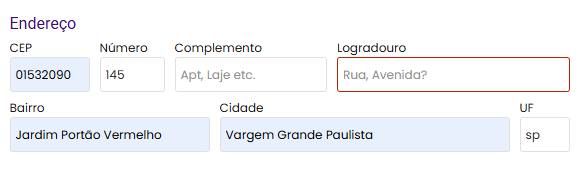 Informe o CEP para que o sistema faça o preenchimento automático de: