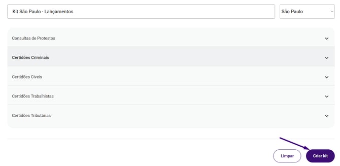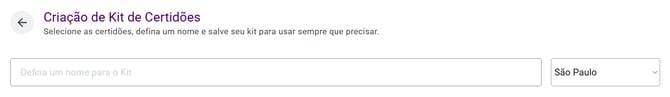 🔎 Dica: Essa funcionalidade já existia na etapa de solicitação de certidões. A novidade é que agora ela pode ser definida diretamente no kit e reaproveitada sempre.