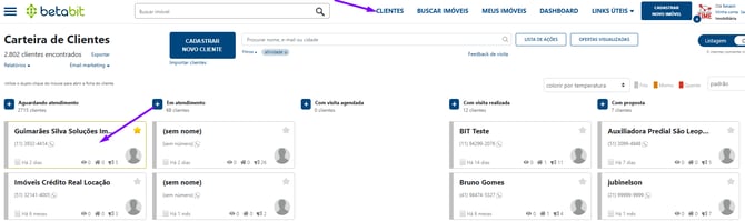 No menu principal, clique em Clientes. Localize o contato desejado na sua carteira e dê um duplo clique para abrir a ficha completa de edição.