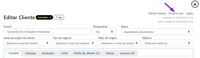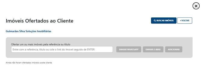 Ofertar Imóveis: Dentro da aba do perfil, você encontrará o link "Ofertar imóveis neste perfil". Ao clicar, o sistema fará um cruzamento imediato com o seu banco de dados e mostrará todos os imóveis que atendem exatamente àqueles critérios.