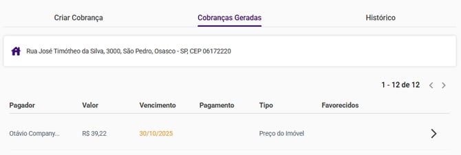 - Você será direcionado automaticamente para a aba Cobranças Geradas.