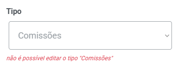 ⚠️ Se a cobrança for do tipo Comissões, não é possível alterar o tipo.