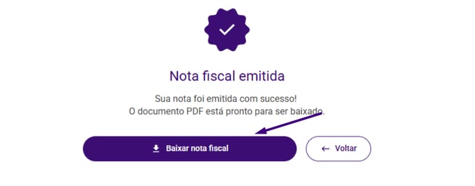 Quando o retorno for concluído, a mensagem “Nota fiscal emitida” será exibida.