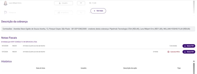 - Consultar ou cancelar a NF diretamente na tela da cobrança.