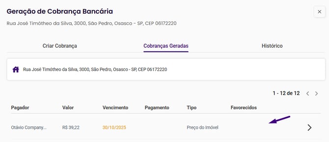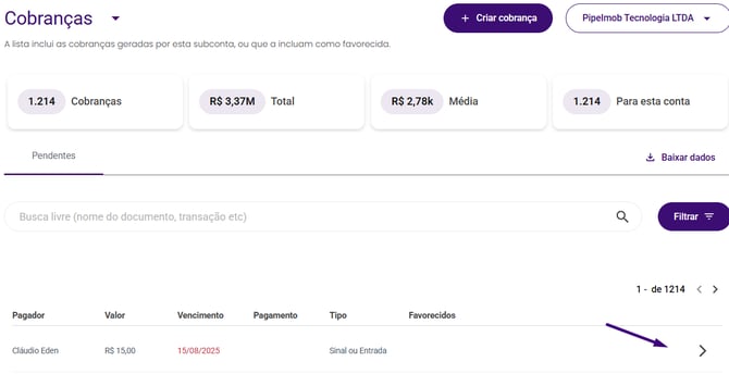 - Clique na cobrança desejada para abrir os detalhes.