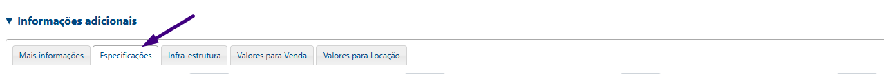 Clique na aba denominada Especificações.