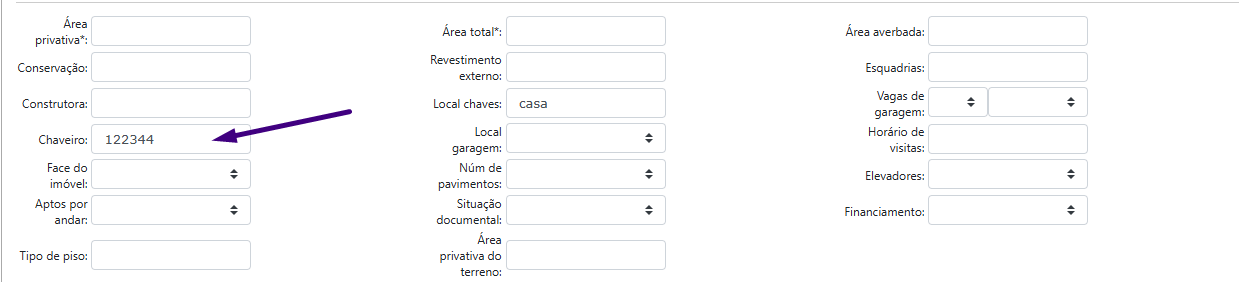 Para que um imóvel apareça no Chaveiro, ele precisa ter um código de identificação preenchido.
