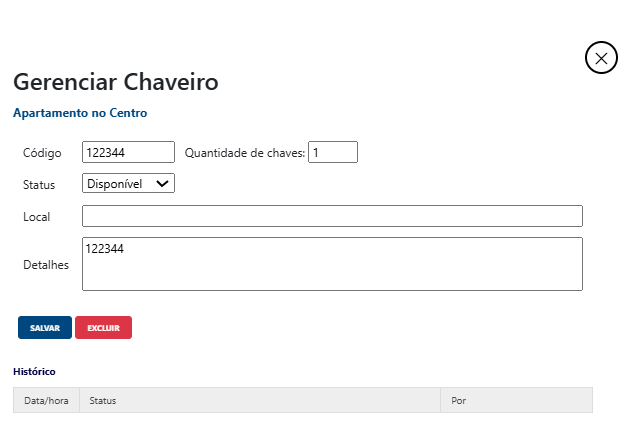 Alterar Status: Definir manualmente se a chave está disponível ou não.