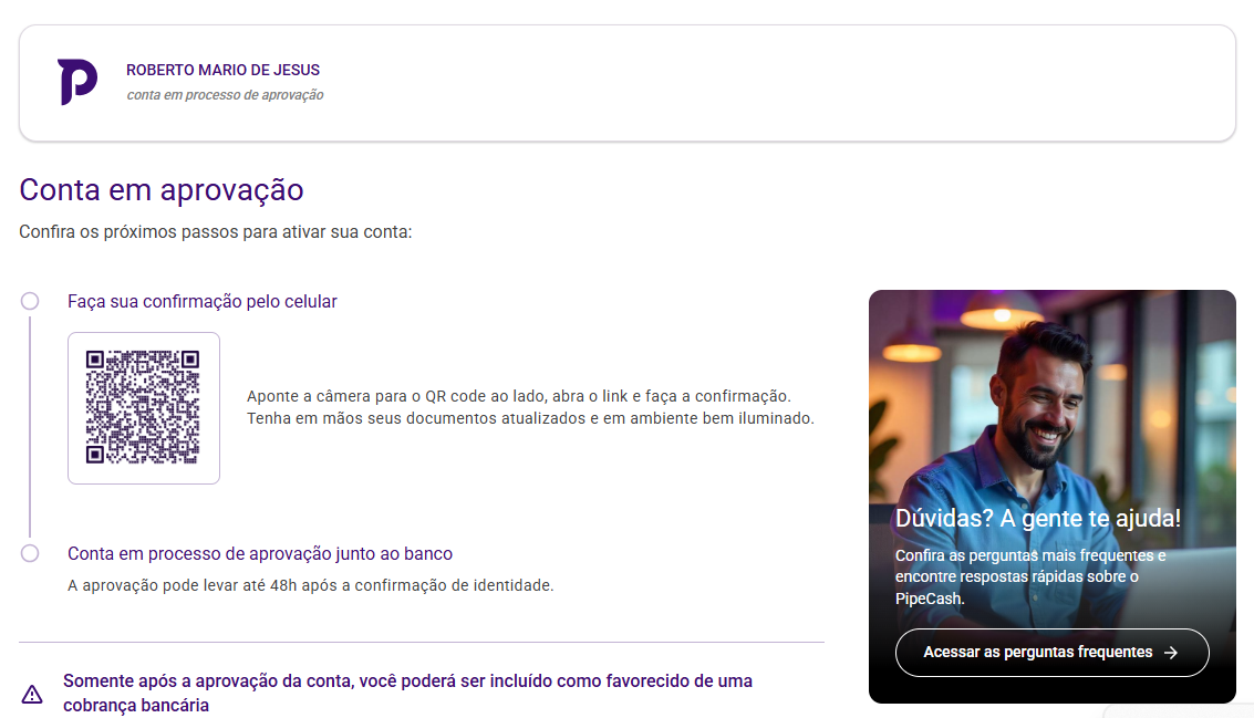 Como realizar a confirmação de identidade e ativação da conta PipeCash?