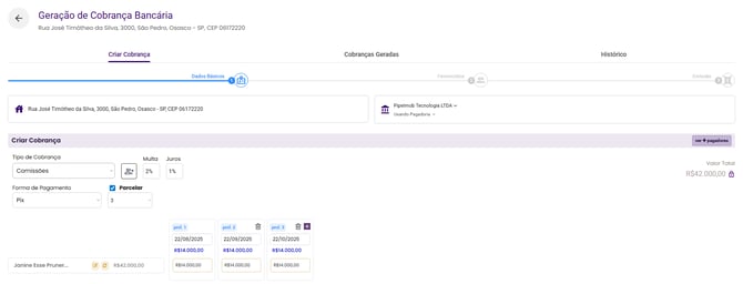 - O sistema abrirá caixas para cada parcela, com seus valores respectivos. Esses valores e os vencimentos podem ser ajustados conforme desejado