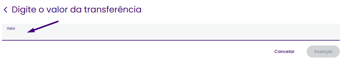 - Preencha o valor da transferência: