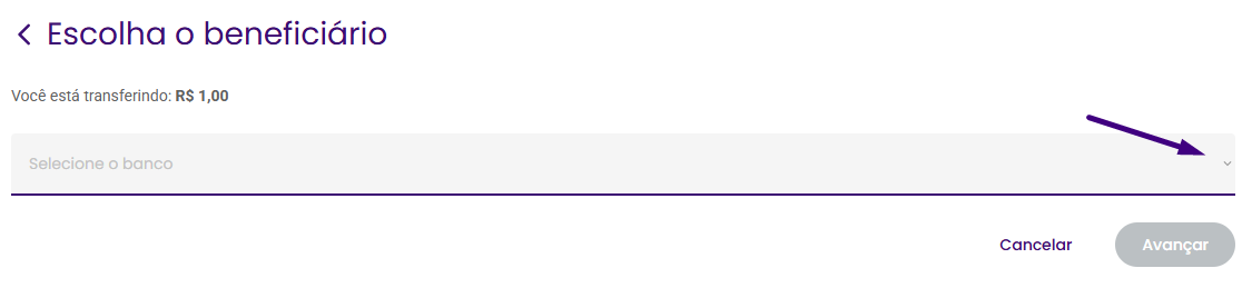 Selecione o banco para o qual o valor será enviado.