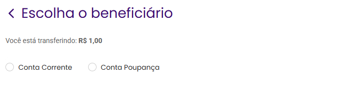 Escolha se a transferência será para uma conta corrente ou poupança: