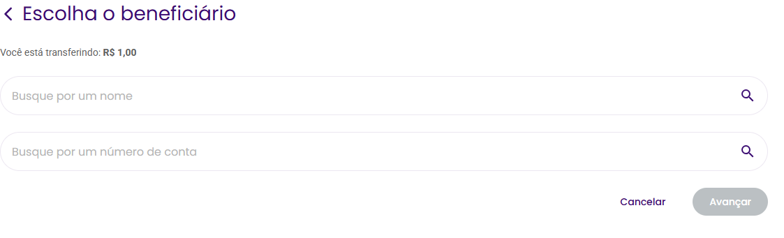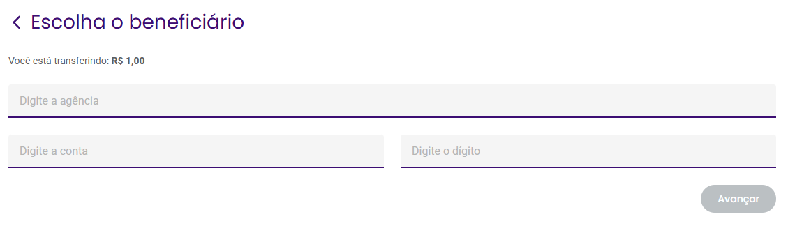 Preencha o valor a ser transferido e clique em Avançar: