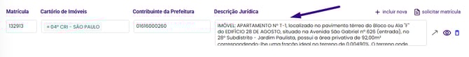 Preencher automaticamente os dados da Descrição Jurídica do Imóvel no formulário;