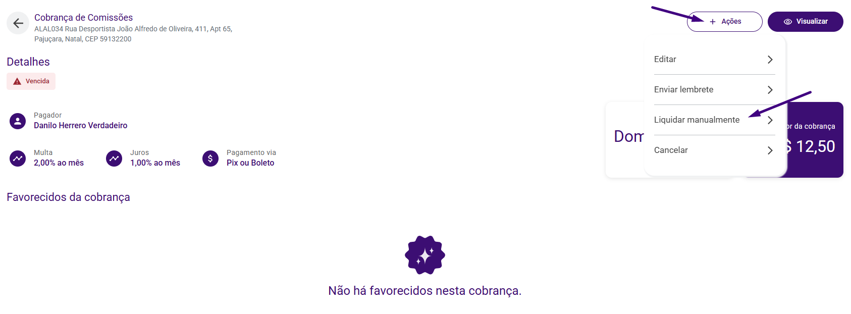 Como liquidar uma cobrança manualmente
