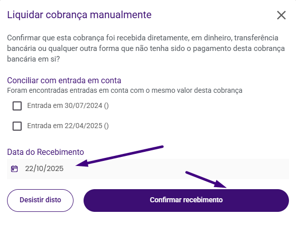 Liquidação Manual de Cobranças