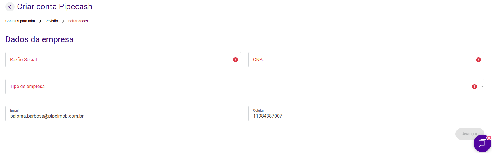 3. Preencha os dados da sua PJ ou PF: