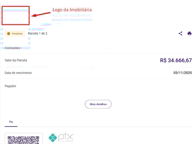No boleto em PDF, o nome da imobiliária não aparece, pois o documento é emitido pela infraestrutura financeira do PipeImob (via Celcoin).