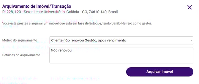 Arquivar um imóvel remove a unidade das visões e buscas operacionais do dia a dia, sem apagar seu histórico. Você pode desarquivar quando necessário.