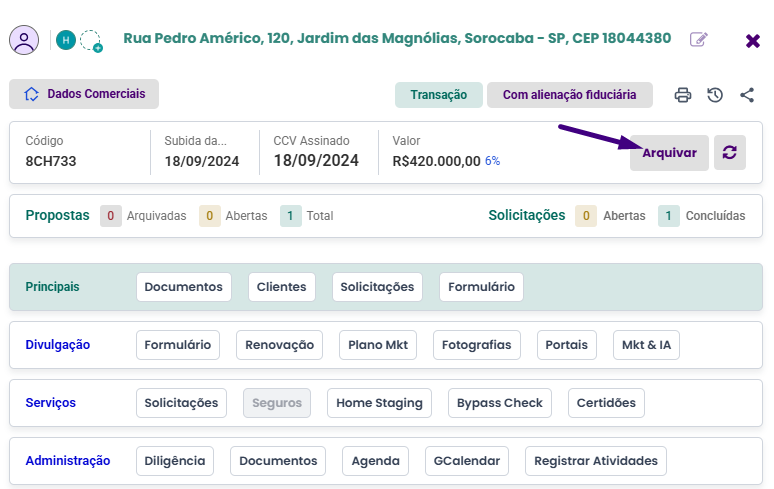 Arquivar é a forma segura de retirar um imóvel do dia a dia sem perder informações.