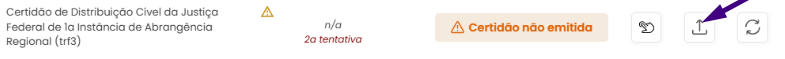 Sempre que uma certidão não for emitida automaticamente, o sistema informa o usuário e disponibiliza o link direto para que o documento possa ser solicitado manualmente no site do órgão responsável.