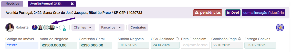 Inclui o responsável, os comissionados e demais usuários adicionados manualmente à transação.